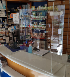 Οι περισσότεροι ιοί εξαπλώνονται μέσω σταγονιδίων στον αέρα από βήχα και φτέρνισμα. Μπορείτε να σταματήσετε την εξάπλωσή τους με μια πλαστική ασπίδα, προστατεύοντας τους ταμίες από αερομεταφερόμενους ιούς ή μικρόβια. Μια εξαιρετική λύση για τράπεζες, γραφεία, φαρμακεία, ταμεία, ασφαλιστικές εταιρείες, ξενοδοχεία, εταιρίες courier, ταμεία εταιριών, ταμεία σούπερ μάρκετ, πάγκους και ταμεία καταστημάτων.